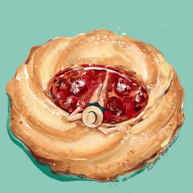 Her main goal is to approach food in an unusual way, offering you the opportunity to rediscover it every time you look at an illustration.
